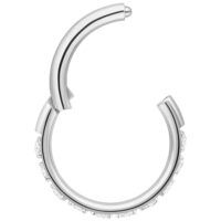 Nuestro elegante Angular Crystal Clicker se caracteriza por sus pequeños cristales cuadrados, lo que lo convierte en un verdadero atractivo para tu oreja. Deja volar tu creatividad, ya que puedes usar este anillo para casi cualquier piercing. Es especialmente adecuado para tu piercing en el lóbulo, helix y nariz. Gracias a su cierre abatible, es muy fácil cambiar tu piercing sin necesidad de ayuda.
