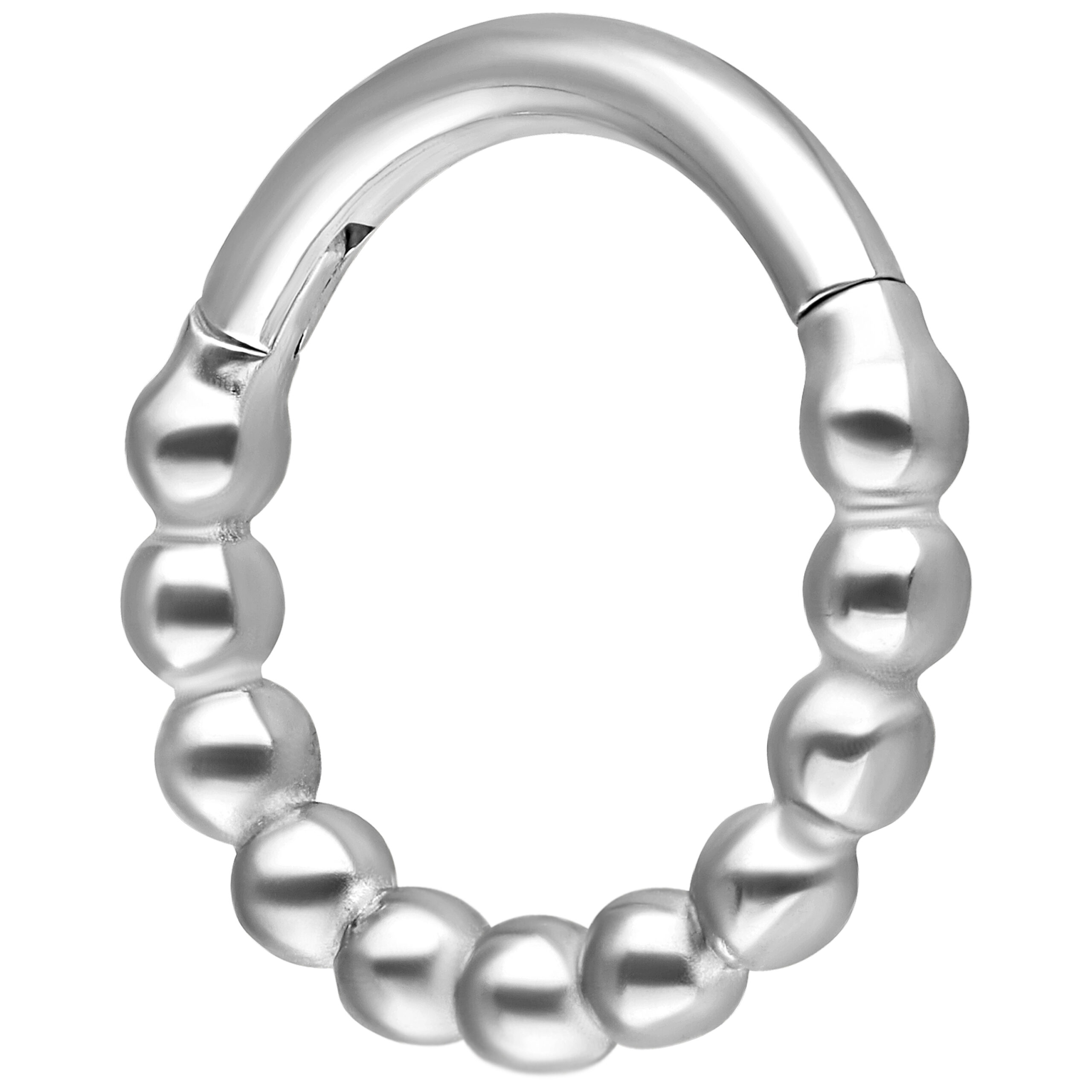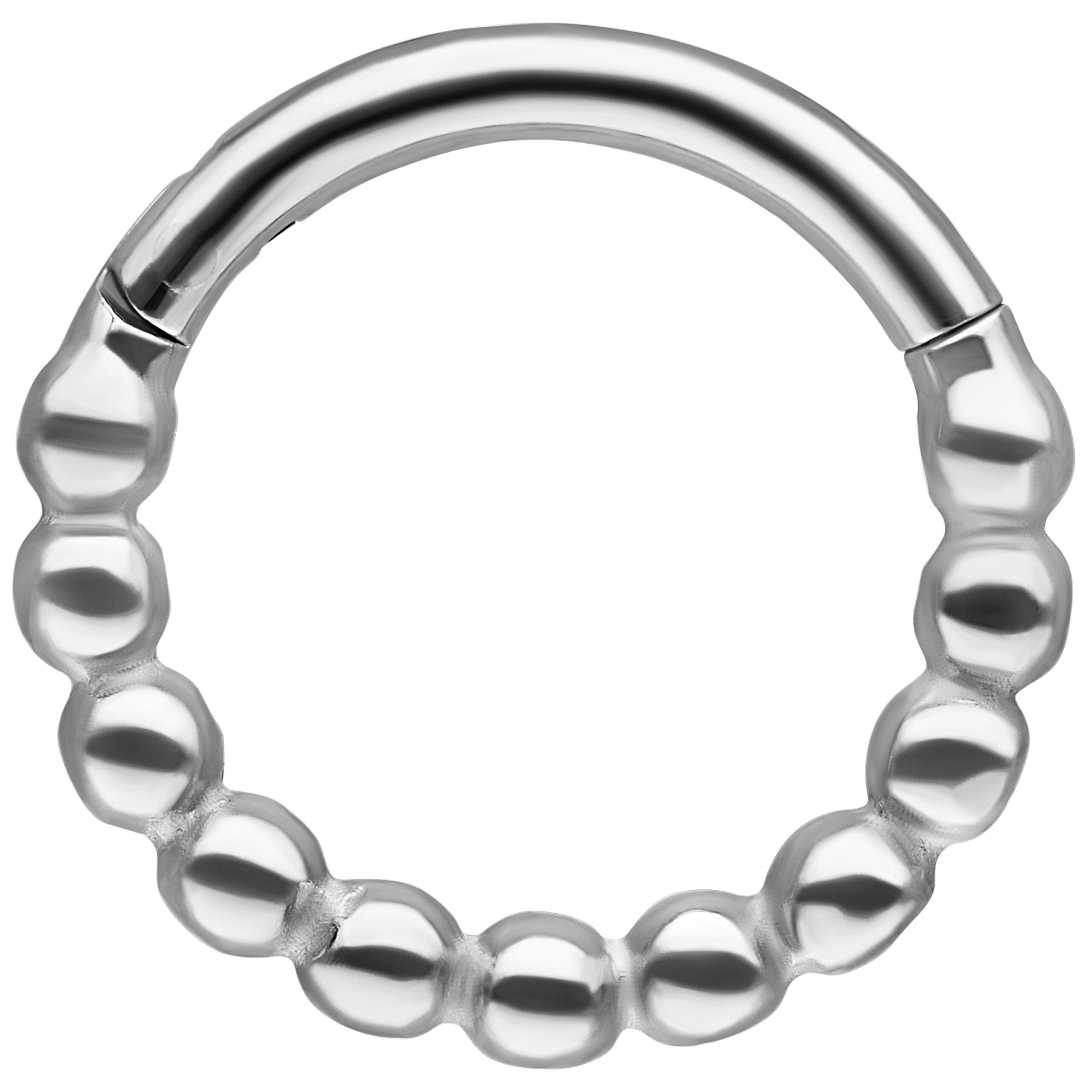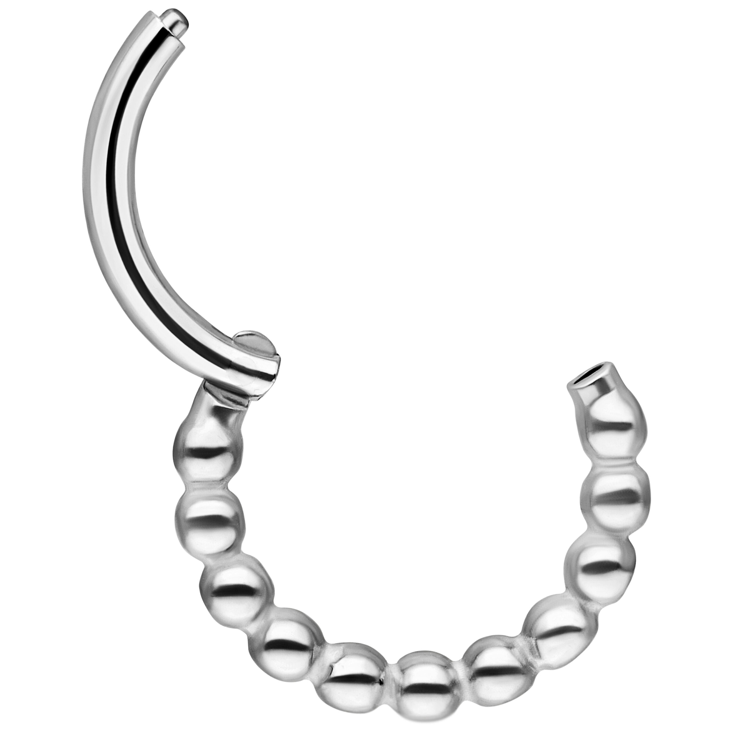 Nuestro elegante Ball Chain Clicker se destaca por su estructura única, que le da al piercing una apariencia de cadena. Deja volar tu creatividad, ya que puedes usar este anillo para casi cualquier tipo de piercing. Es especialmente adecuado para tu piercing en el lóbulo, helix y nariz. Gracias a su cierre abatible, cambiar el piercing es extremadamente sencillo y no requiere ayuda. ¡Reinvéntate!