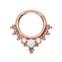 Nuestro Crystal Bindi Septum Clicker está hecho de acero inoxidable de alta calidad y es ideal para tu Septum. El piercing tiene una barra de bisagra curva que facilita ponértelo tú mismo, ¡sin necesidad de ayuda! Todo esto se complementa con un diseño súper elegante y moderno con cristales engastados individualmente.