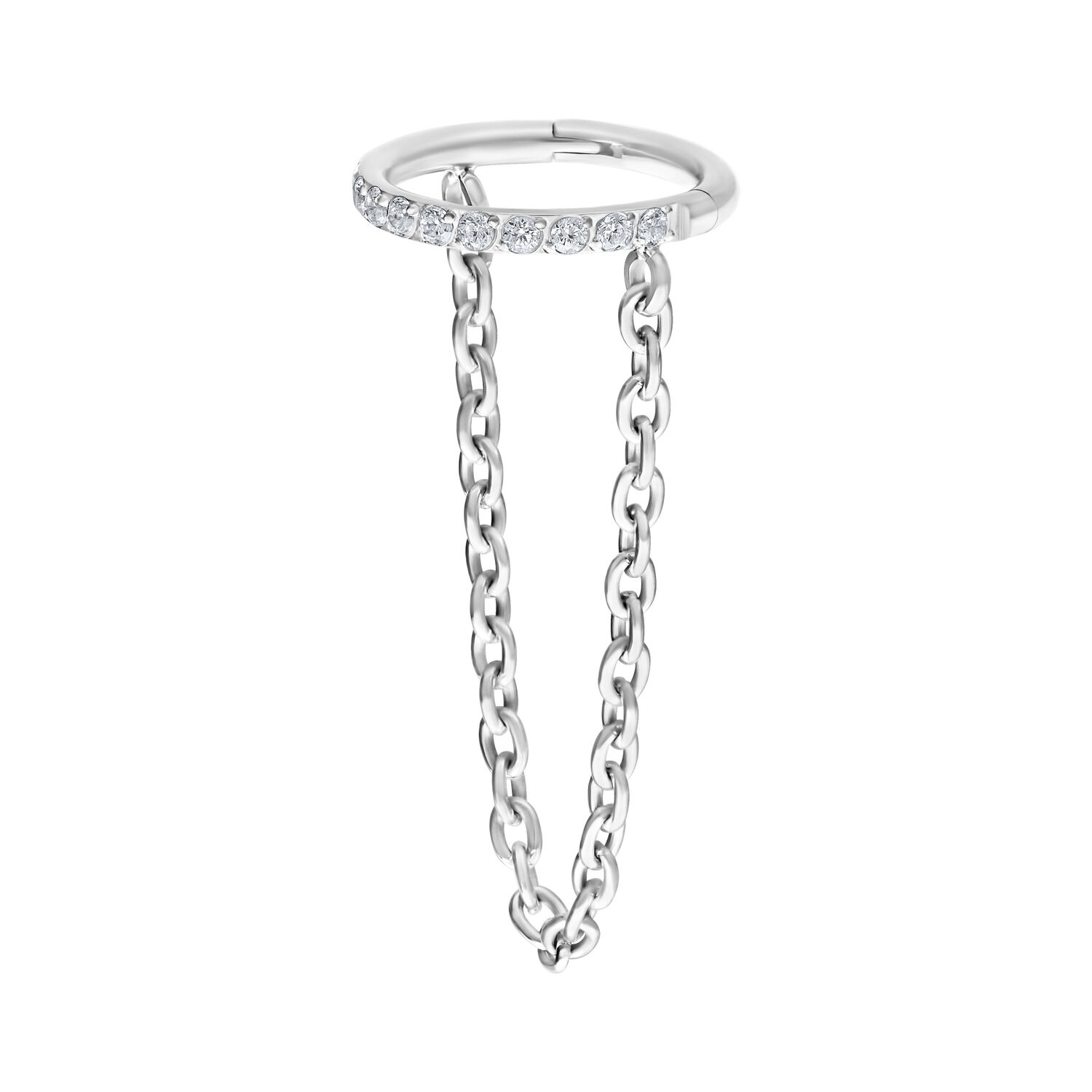 El aro con bisagra permite una fácil colocación y un óptimo confort al llevarlo. Además, este piercing está hecho de titanio de alta calidad con un revestimiento PVD de color oro blanco.