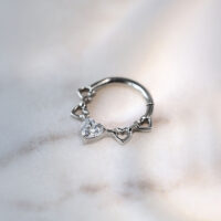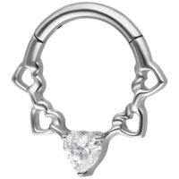 Clean design with a symbolic edge – the Crystal Hearts Septum Clicker combines precise lines with a sparkling centerpiece. The open heart details along the ring and the central heart-cut crystal create a refined and balanced look.