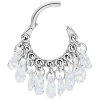 Nuestro Clicker de cristales colgantes está hecho de acero inoxidable de alta calidad. Lo especial de este aro de piercing son los cristales que oscilan, que realizan un fascinante baile con cada movimiento y le dan a tu look un toque rebelde con un poco de elegancia. Los cristales aportan el acento de glamour definitivo que seguramente atraerá todas las miradas.