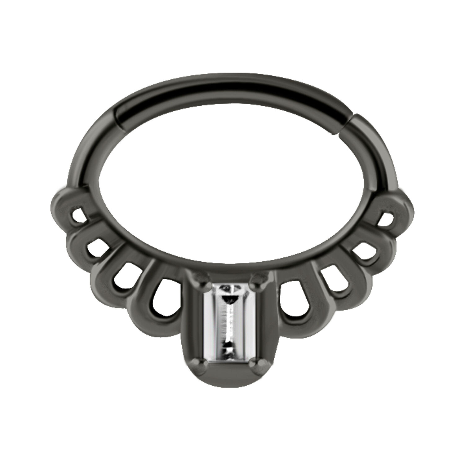 Este Princess Clicker de alta calidad está fabricado en acero inoxidable y destaca por su hermoso circonio, ¡que hará que brilles desde lejos! El aro segmentado tiene un cierre de clic que facilita mucho la colocación del piercing.