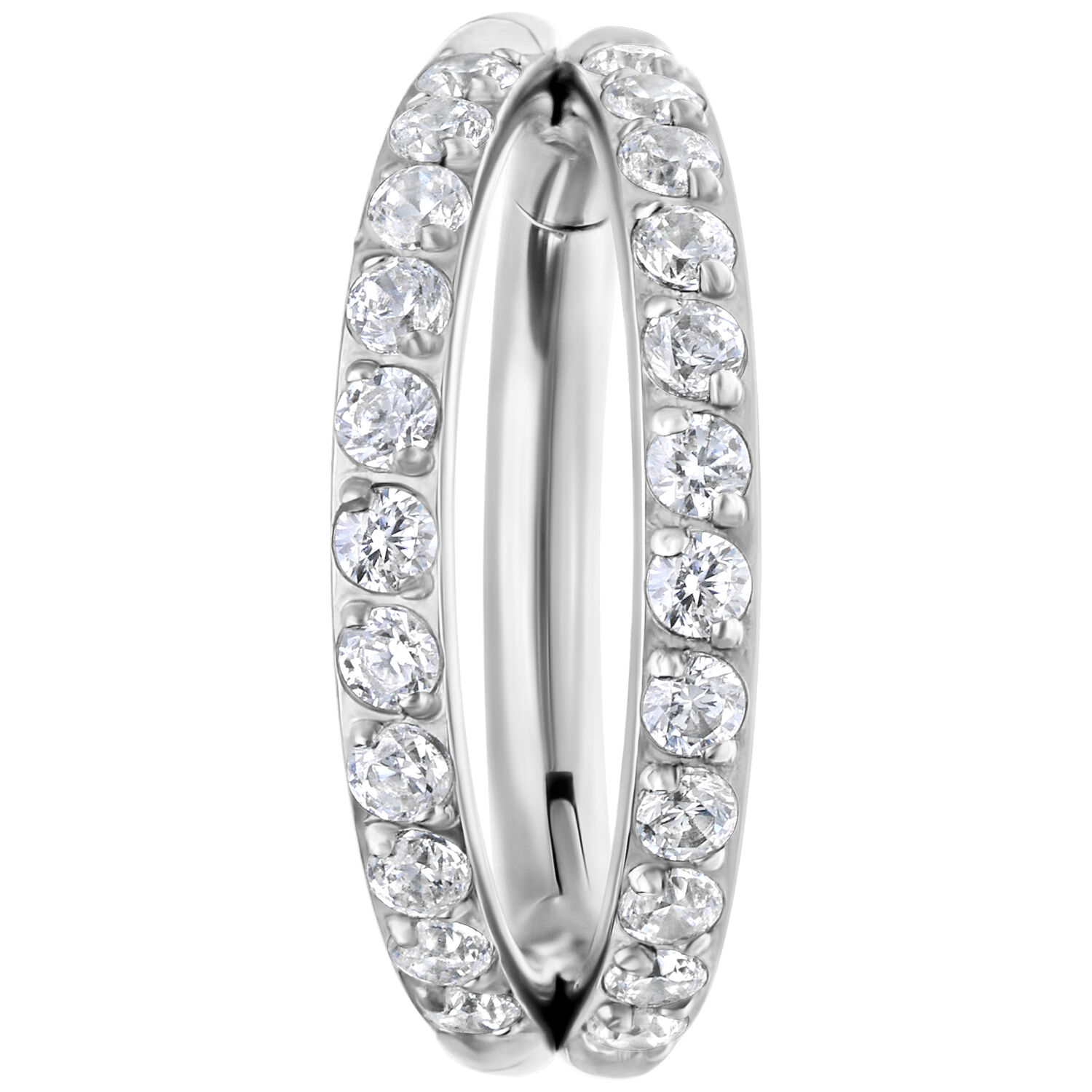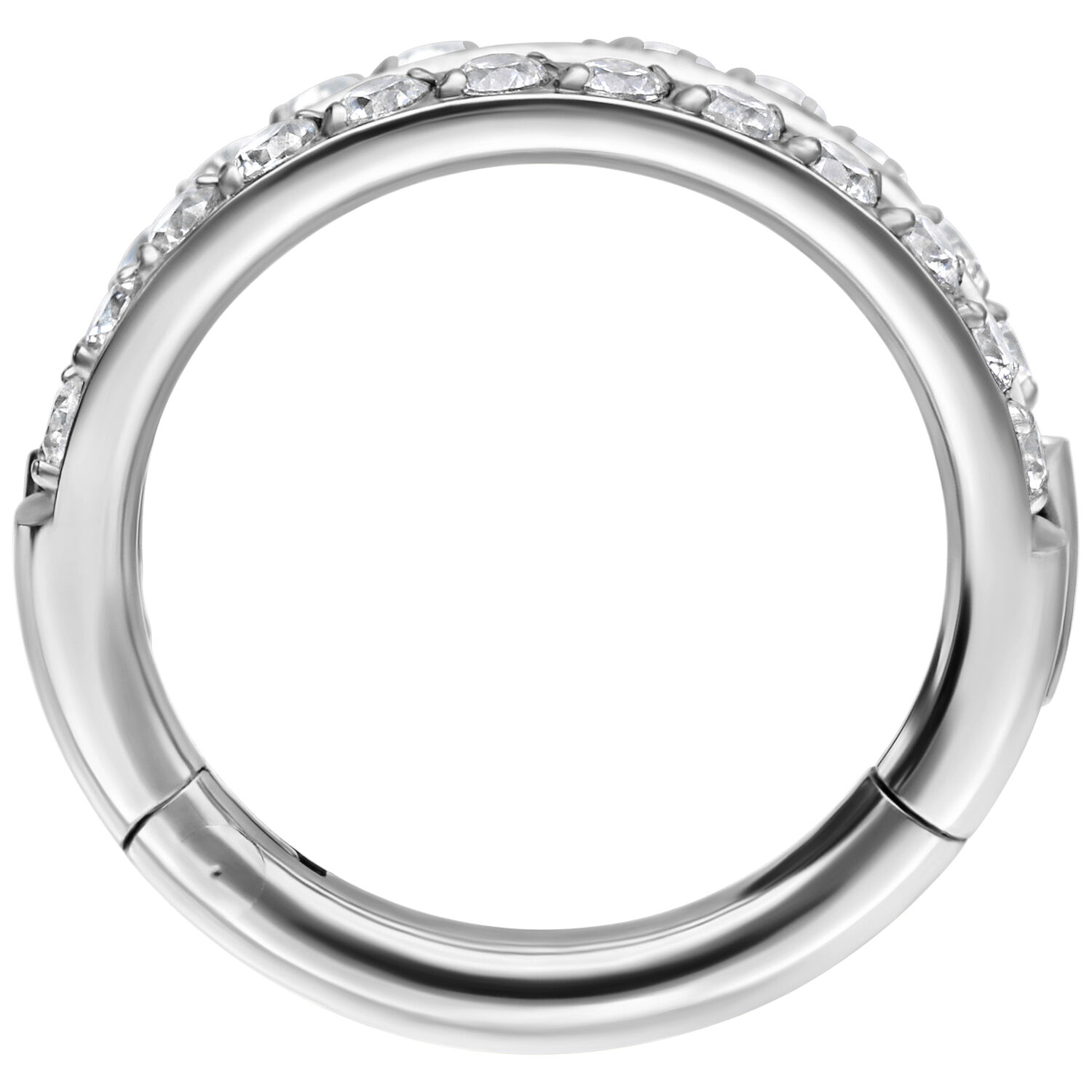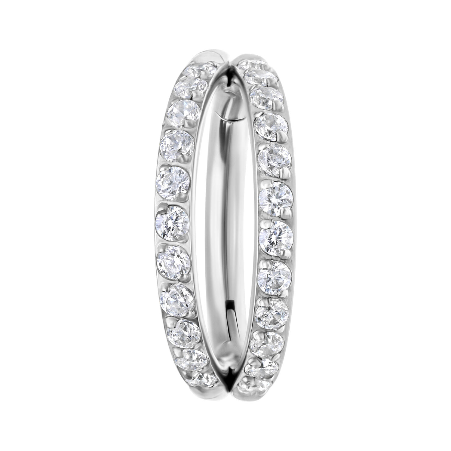 Nuestro Double Row Crystal Clicker de alta calidad destaca por sus numerosos cristales brillantes que lo convierten en un verdadero centro de atención. Deja volar tu creatividad, ya que puedes usar este aro prácticamente en cualquier piercing. Es especialmente adecuado para Nostril, Lobe o Helix. Gracias a su cierre abatible, es súper fácil cambiar tu piercing sin ayuda. ¡Reinvéntate!
