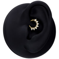 Gracias al práctico cierre tipo clicker, este piercing es ideal para septum y Daith. La forma armoniosa se ajusta perfectamente y realza tu piercing con estilo, ya sea como un detalle discreto o un toque glamuroso para ocasiones especiales.
