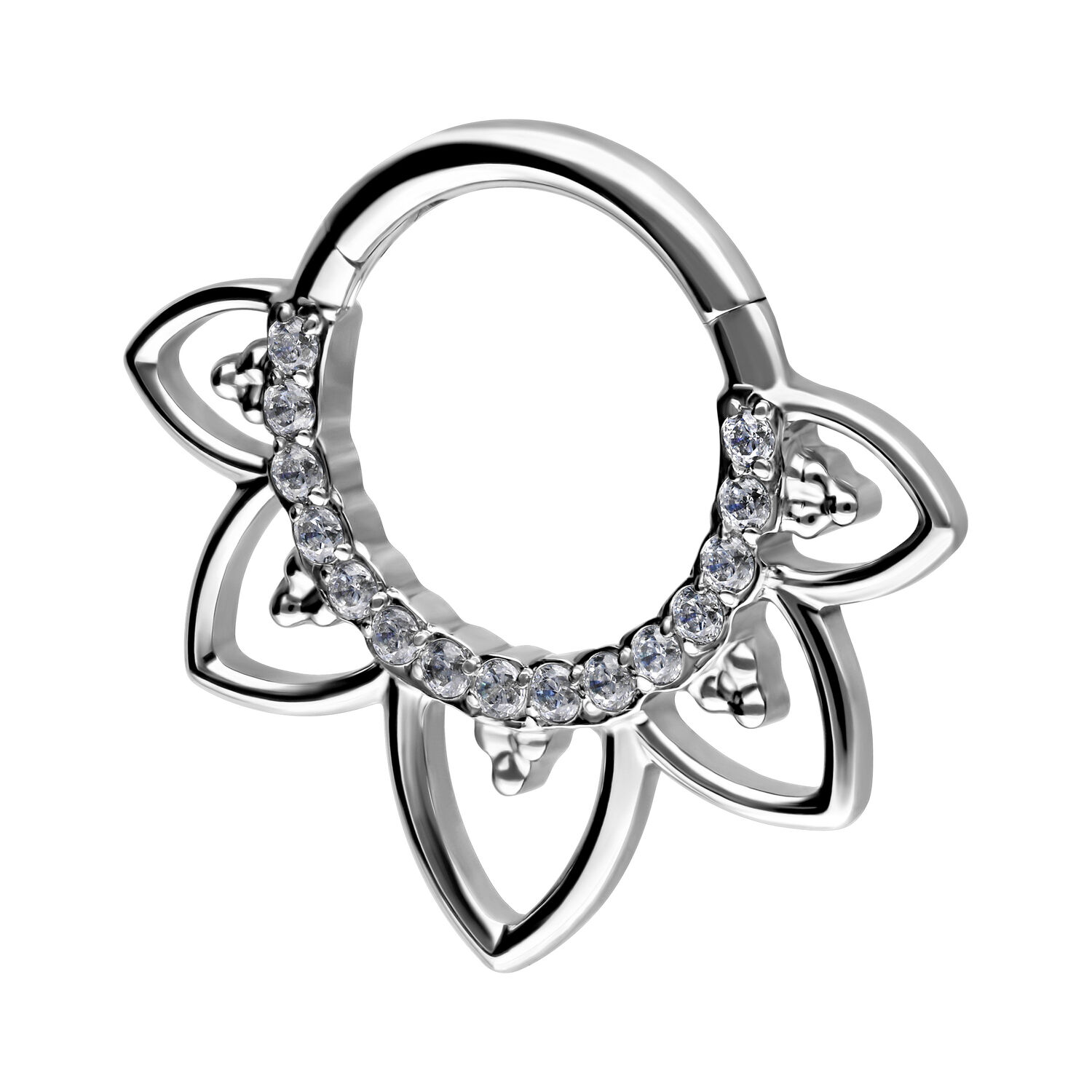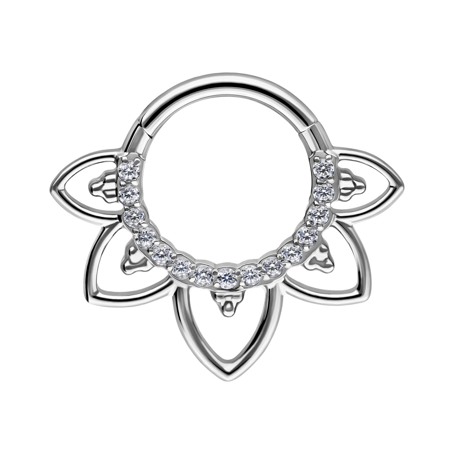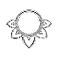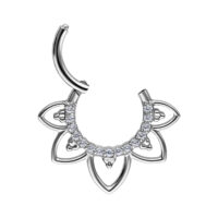 Nuestro Oriental Crystal Septum Clicker está hecho de acero inoxidable de alta calidad y es ideal tanto para tu piercing de septum como para el de Daith. El piercing cuenta con una barra de bisagra curvada, lo que te permite ponerlo fácilmente sin necesidad de ayuda.