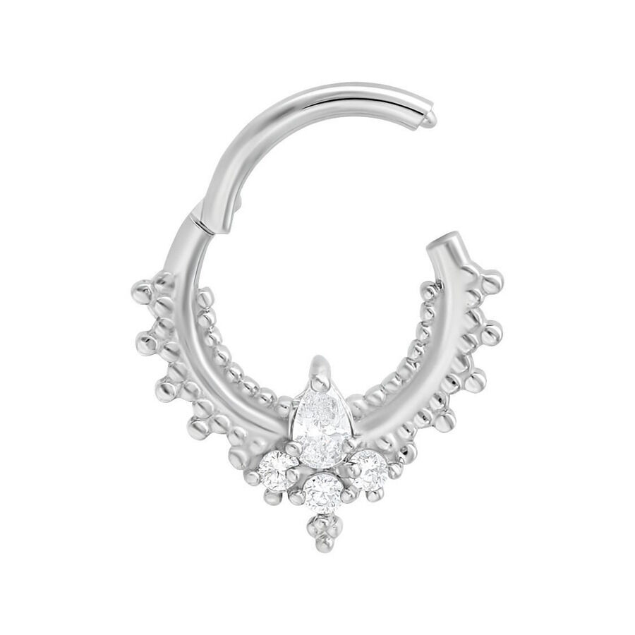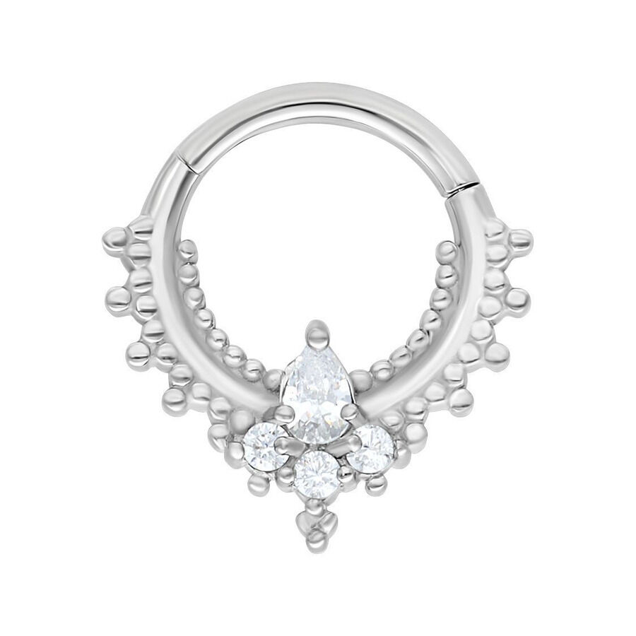 Nuestro Oriental Drop Septum Clicker está hecho de acero inoxidable de alta calidad y es ideal para tu Septum. El piercing tiene una barra abatible curva que facilita colocarlo tú mismo, ¡sin necesidad de ayuda!