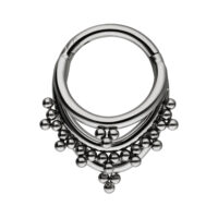 El clicker es ideal para tu piercing en el helix, daith y septum. Gracias a su cierre desplegable, es súper fácil cambiar tu piercing sin ayuda.