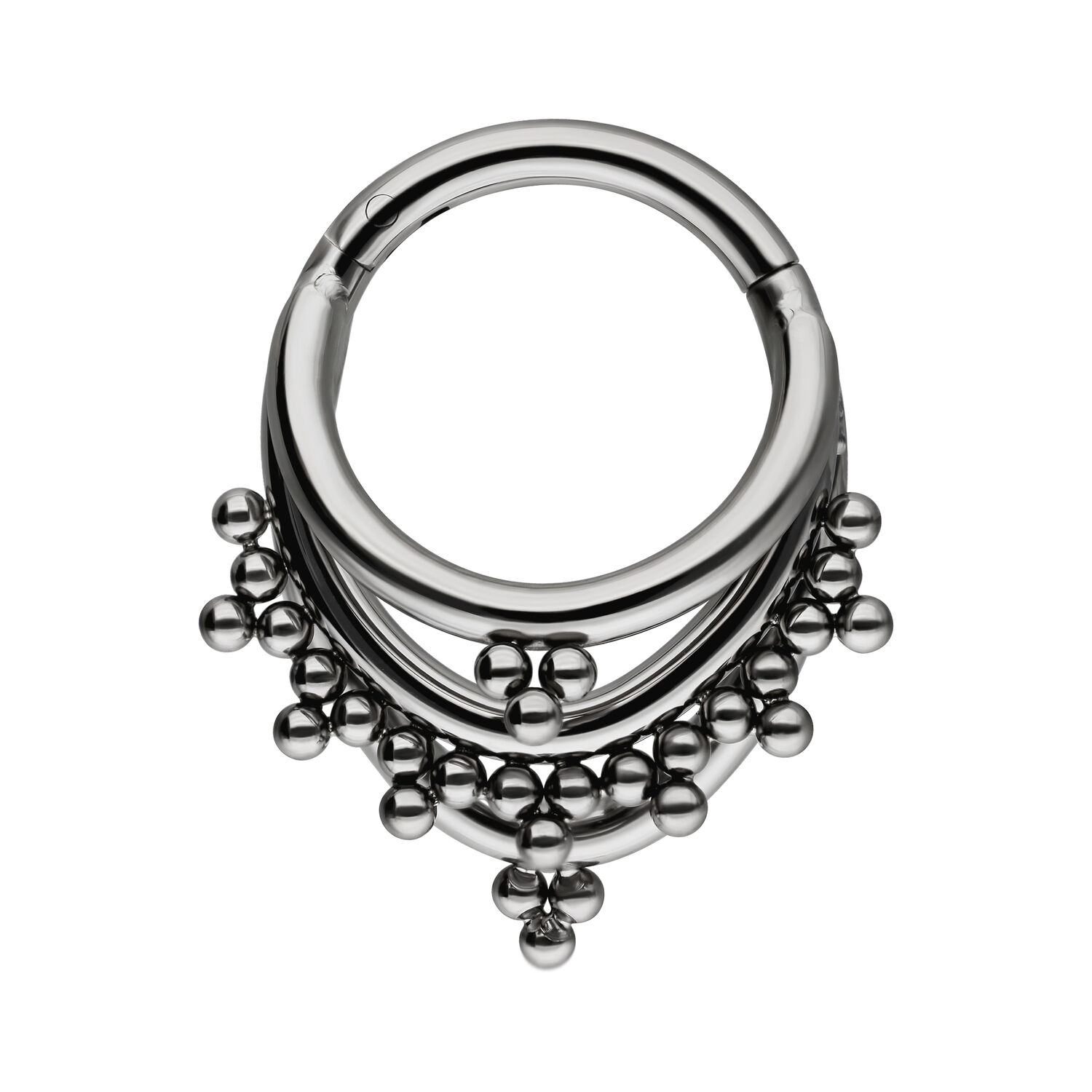 ¿Buscas un piercing especial que te convenza sin necesidad de brillo? Entonces nuestro Triple Oriental Clicker es justo lo que necesitas. Ya sea en el día a día o en ocasiones especiales, este clicker de titanio añade un toque de belleza oriental a tu estilo. Date un capricho con un accesorio que resalte tu look y te haga brillar, ¡sin tanto bling-bling!