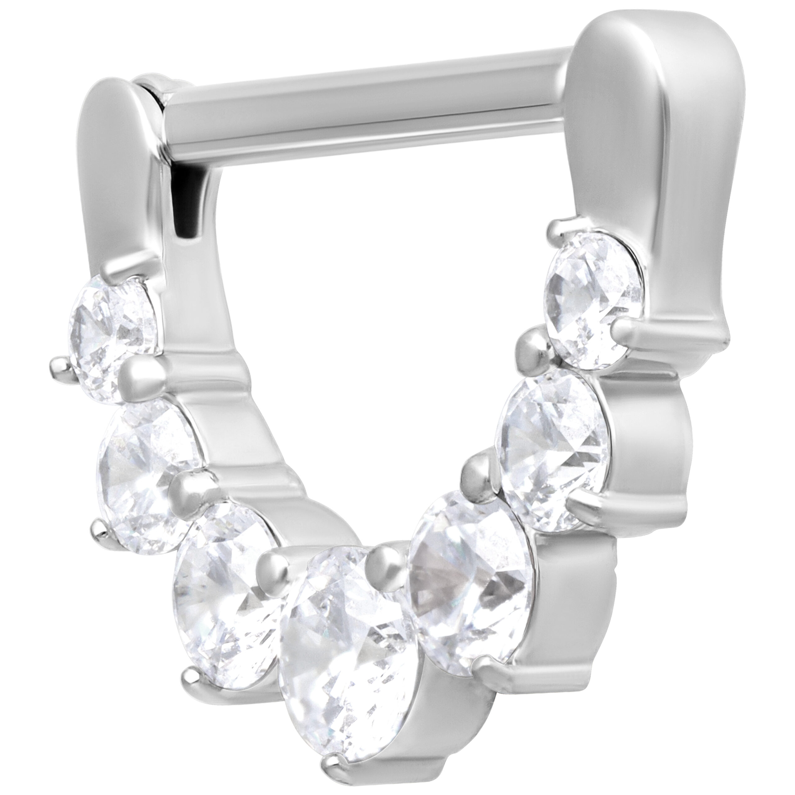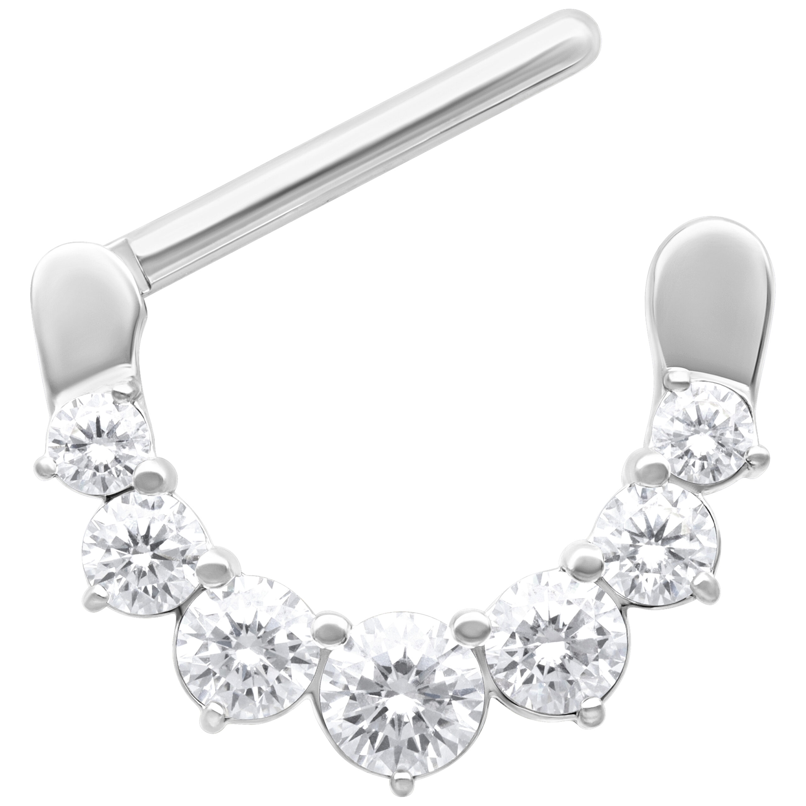 El piercing está hecho de acero inoxidable de alta calidad y cuenta con cristales redondos engastados, que brillan maravillosamente cuando les da la luz, siendo un verdadero punto de atracción.