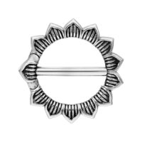 Gracias a la bisagra doble, las dos curvas florales se abren y cierran fácilmente. La barra (grosor 1,6 mm) pasa sin problema por el pezón y queda bien cerrada por ambos lados.
