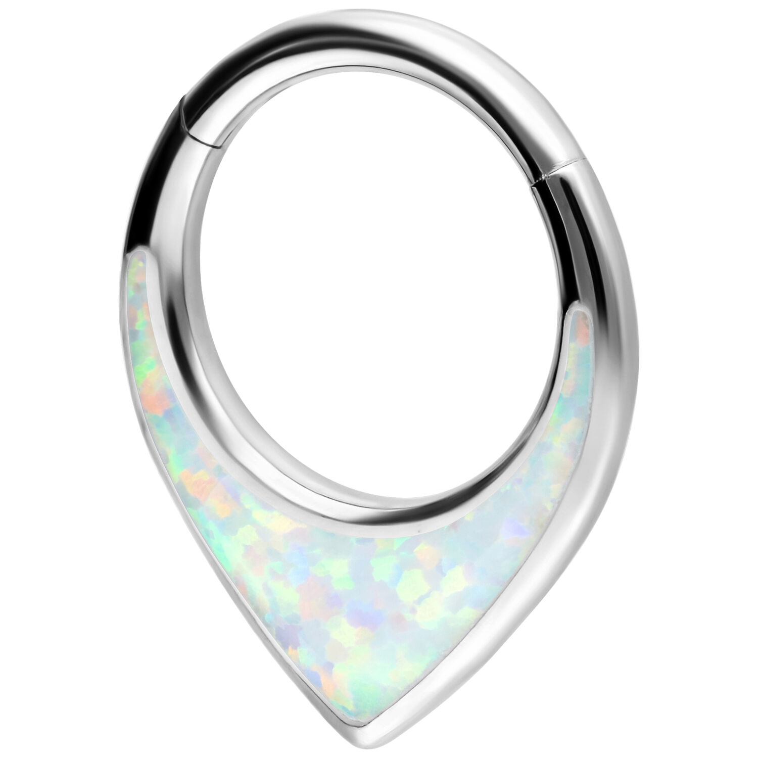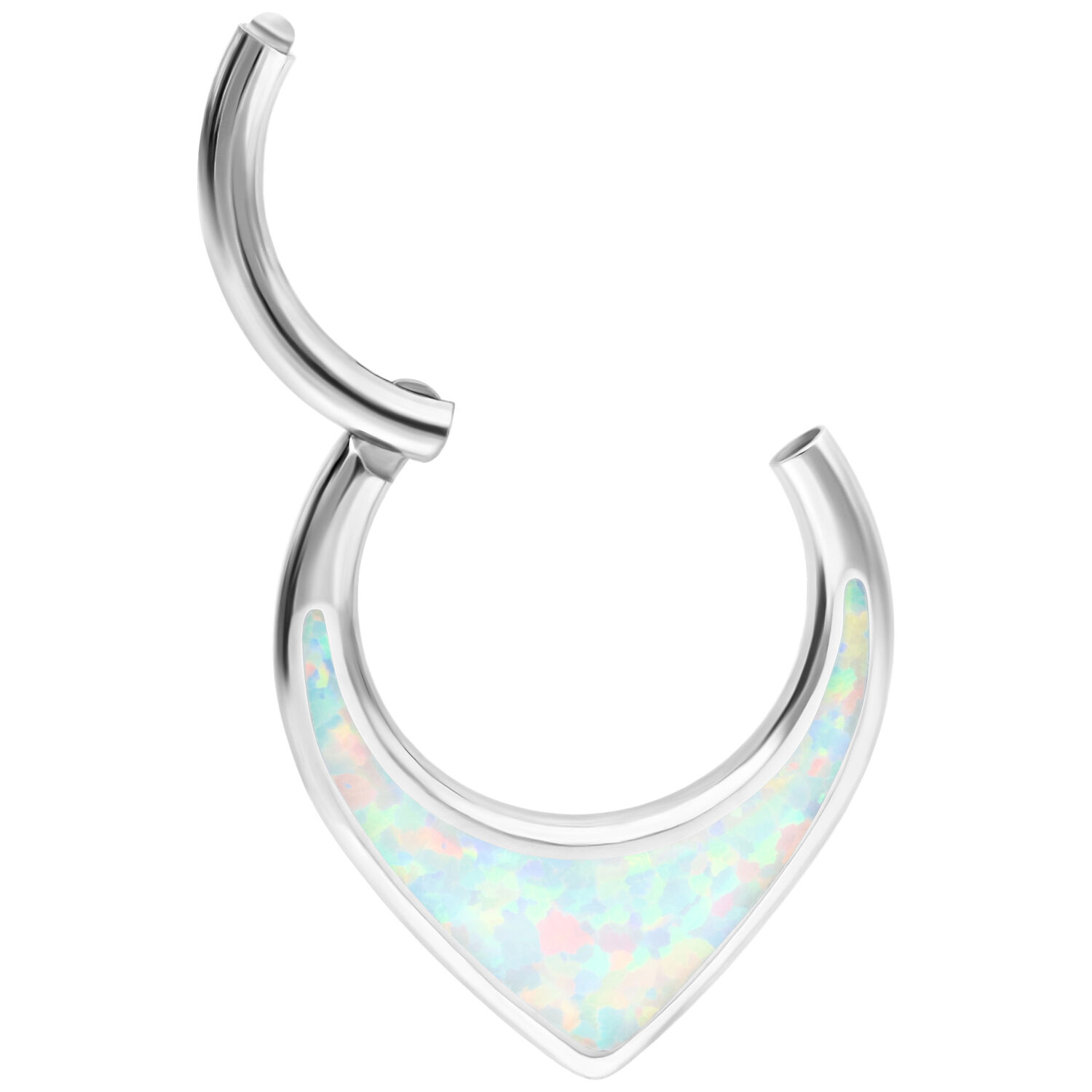 Nuestro Chunky Opal Septum Clicker con bisagra es muy fácil de colocar y no solo se puede usar como joyería para septum, sino también en la oreja o en el labio superior (Smiley). El piercing está hecho de titanio de alta calidad en color plata y lleva una hermosa piedra de ópalo sintético. Los ópalos son algo muy especial, ya que cada pieza es única, como una edición limitada. Dependiendo del ángulo y la luz, nuestros ópalos cultivados reflejan destellos de colores intensos o pasteles. ¡No te pierdas este espectáculo de colores y llévate todo el espectro como joyería para piercings!