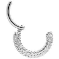 Nuestro Three Twisted Ropes Clicker está fabricado en acero inoxidable de alta calidad y es ideal para tu piercing en el septum o en el daith. El piercing cuenta con una bisagra curvada, que facilita la colocación del piercing por ti mismo, ¡todo sin necesidad de ayuda!