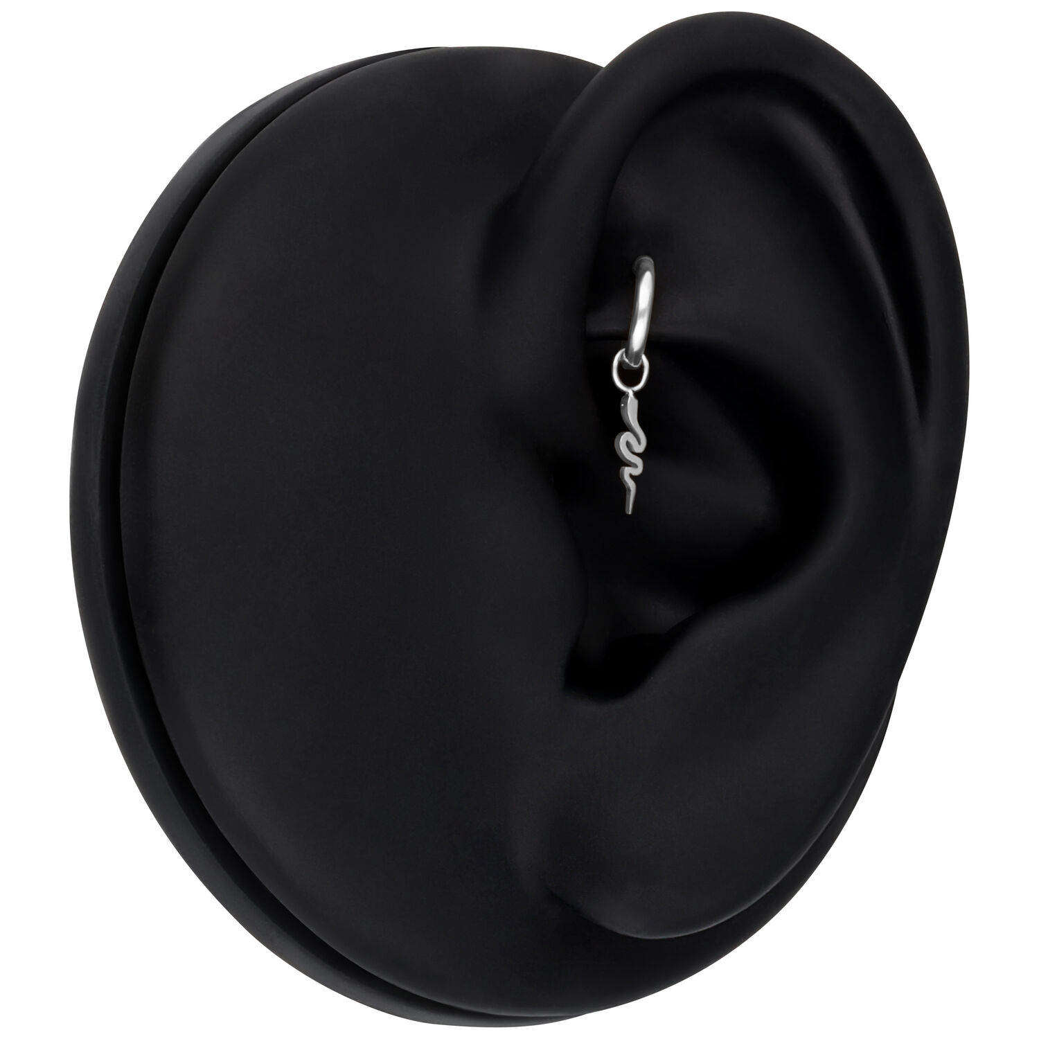 Gracias a su tamaño compacto y proporciones equilibradas, el Snake Pendant es ideal para rook, helix, vertical helix o lóbulos. Ya sea como detalle discreto o como pieza llamativa, el colgante se puede combinar de muchas formas y complementa distintos estilos de piercing.