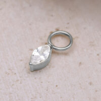 The pendant can be attached to a piercing clicker and is well suited for helix, rook, vertical helix or lobe placements. Its slender design allows for versatile styling and easy integration into both minimalist and expressive piercing setups.