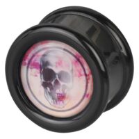 El elegante plug de PMMA con motivo de calavera le da un toque seguro a cualquier outfit.