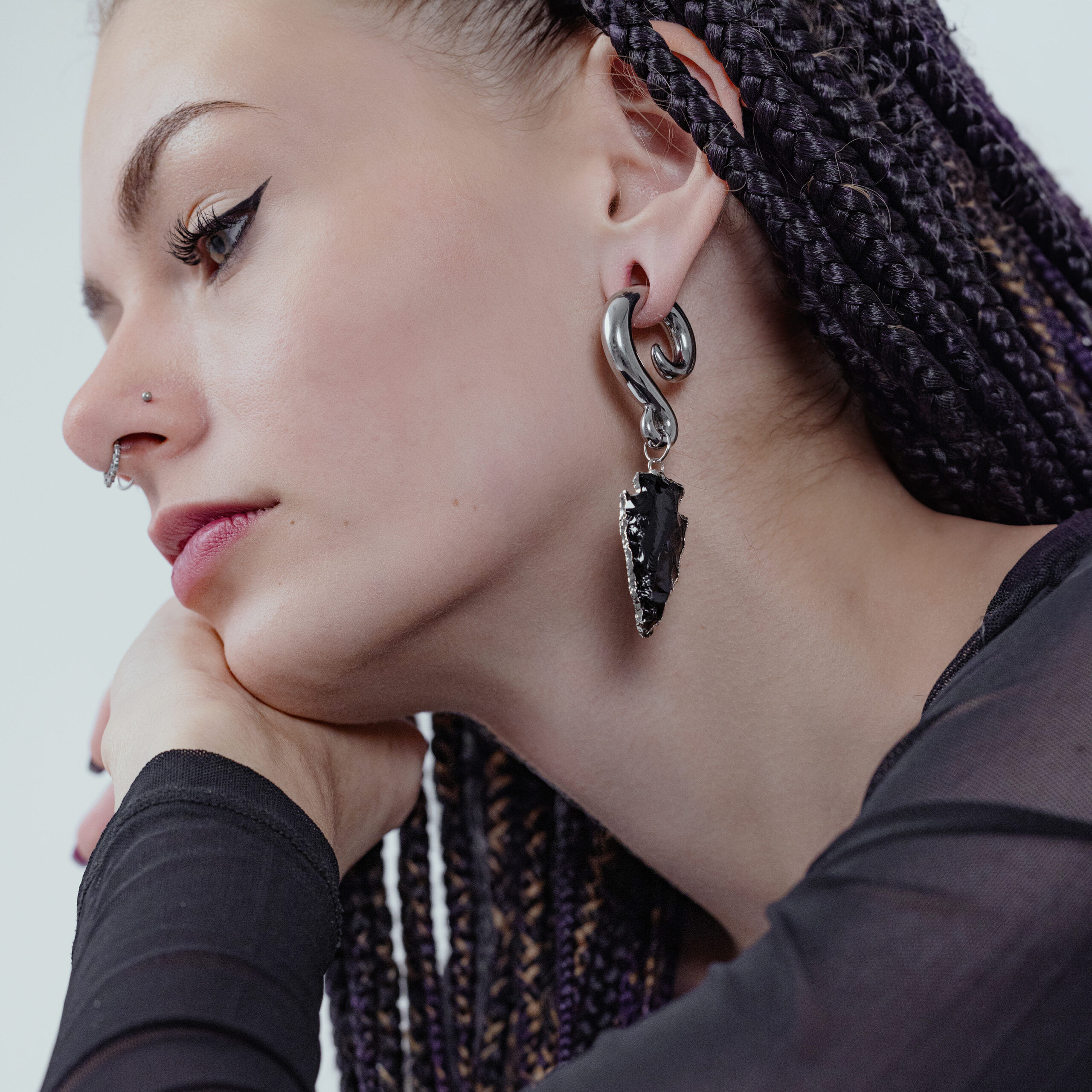 **Descubre ahora nuestras hermosas pesas de oreja de piedra natural con colgante de obsidiana negra.**