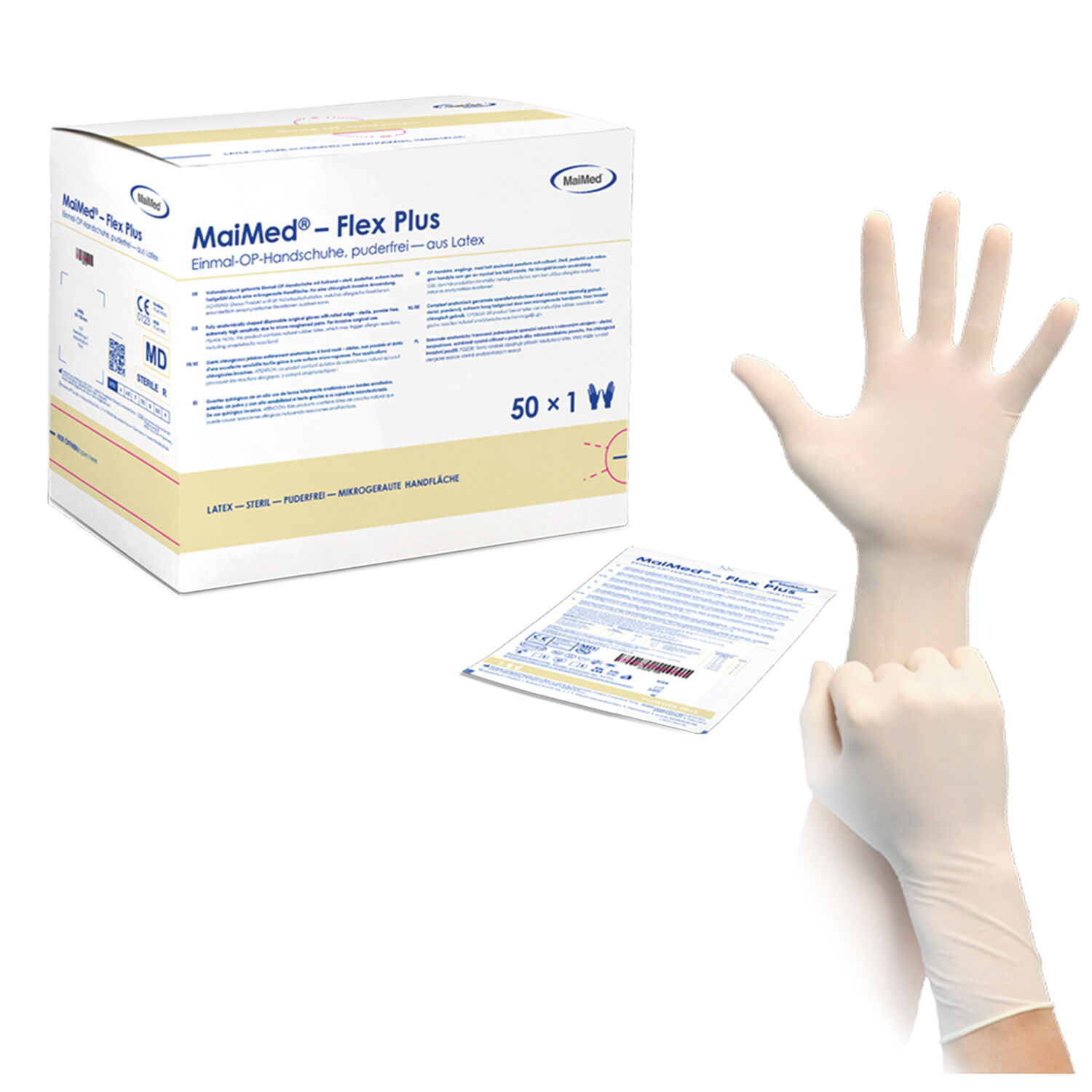Atención: Los guantes de cirugía contienen látex de caucho natural, que puede causar reacciones alérgicas. Están destinados para un solo uso y son estériles mientras el embalaje esté intacto y sin daños. ¡Una caja contiene 50 pares de guantes de cirugía estériles!