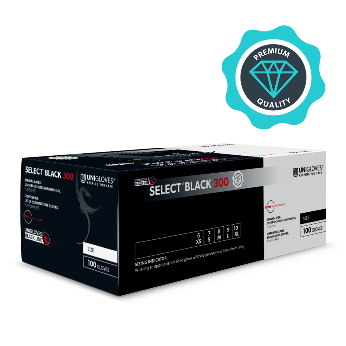 Guantes negros no estériles con palma microtexturizada para mejor agarre.