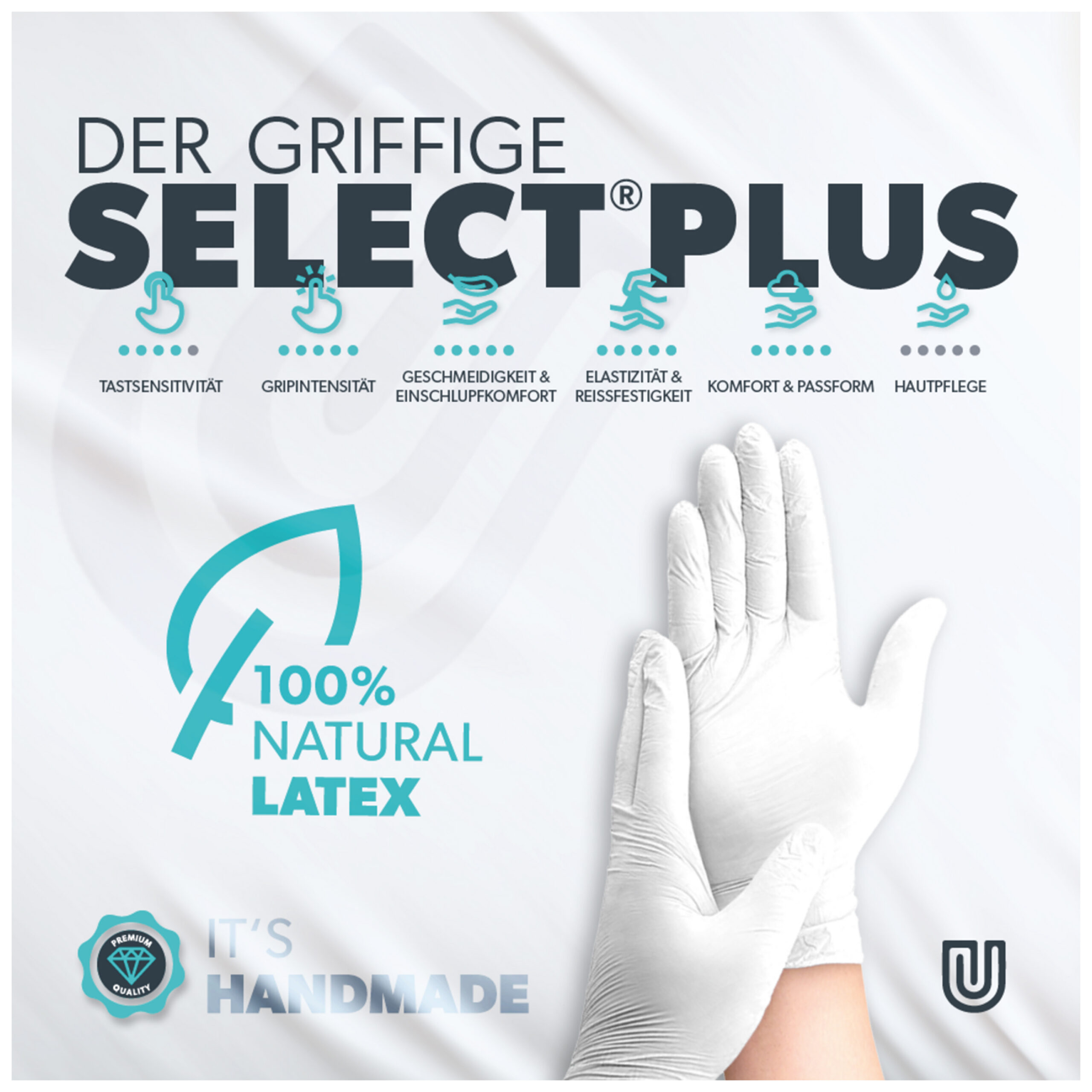 Guantes de látex sin polvo de calidad premium con borde enrollado. No estériles con palma microtexturizada para un mejor agarre. Aprobados para contacto con alimentos y doblemente clorados. Fabricados según EN 455, T. 1-4; EN 374.