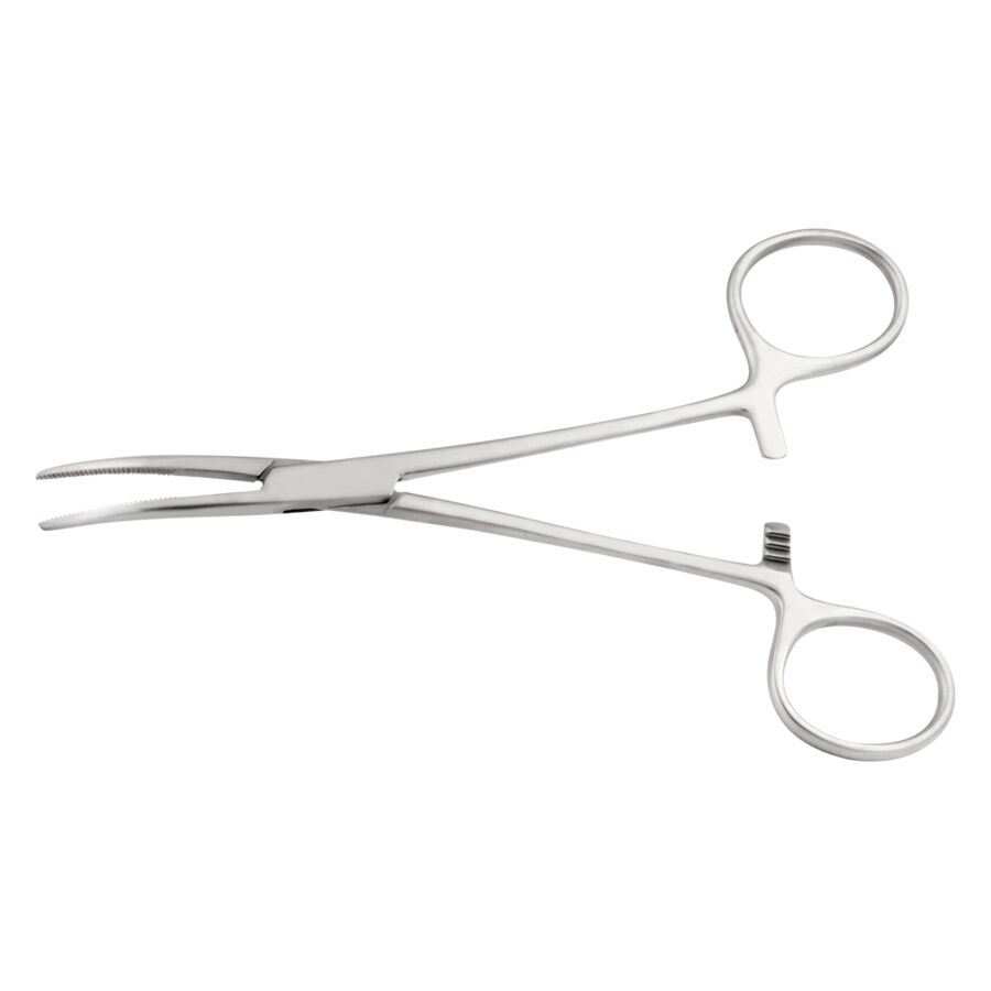 Pinza de Kelly para arteria con cabeza curvada.
