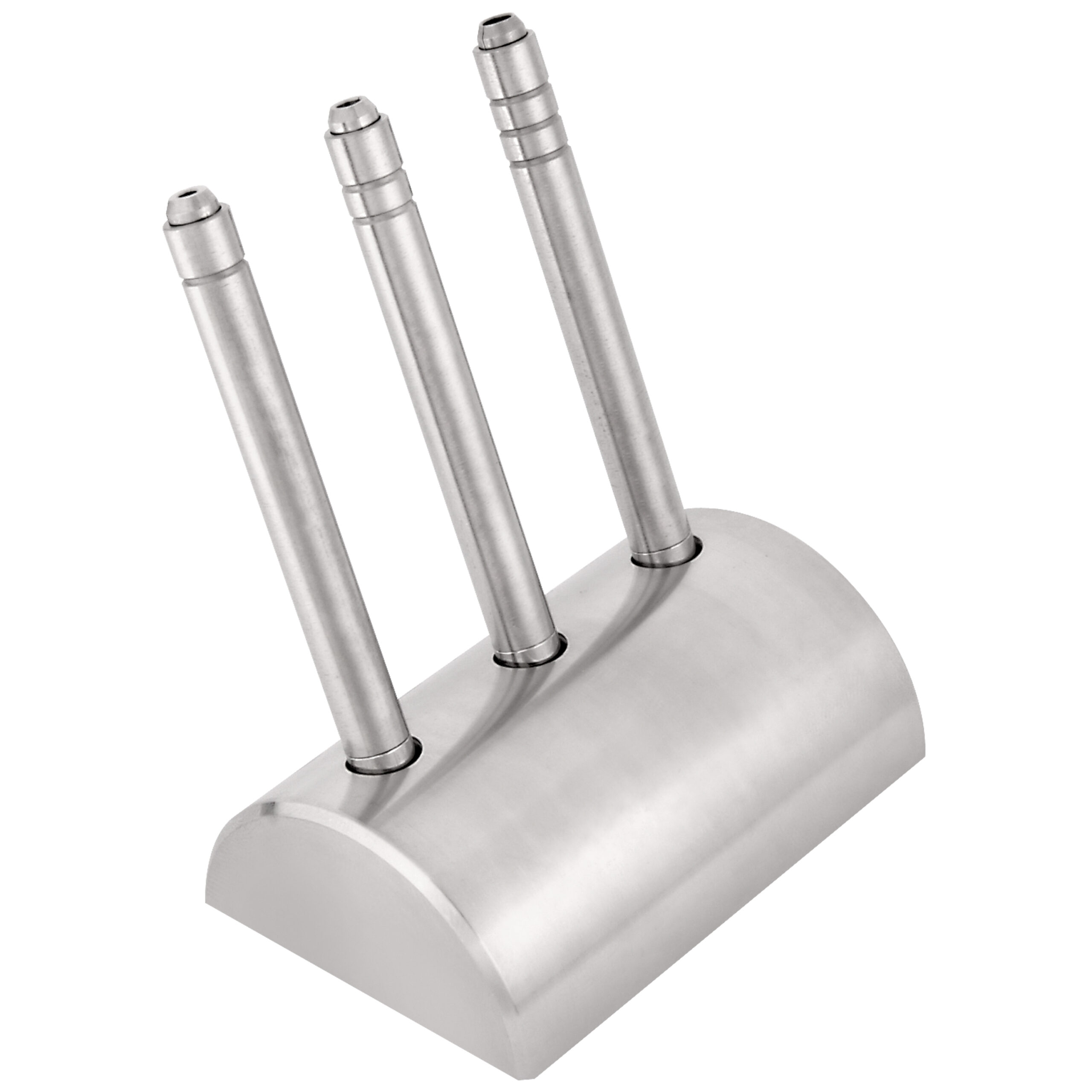 BCL02, este es un set de sujetadores de bolas para bolas de diámetros de 2.0 mm, 2.5 mm y 3.0 mm. Para sujetar la bola, debes aflojar un anillo de rosca en la parte trasera del sujetador y luego recoger la bola con la punta. Una vez que la bola esté en la posición deseada, vuelve a apretar el anillo de rosca para fijarla. Para soltar la bola, simplemente repites el proceso en sentido inverso.