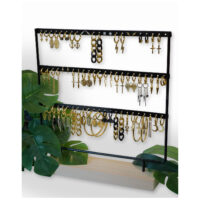 Este expositor para aros pequeños cuenta con 69 agujeros y es la solución ideal para presentar creolas y pendientes de aro de manera profesional. Perfecto para escaparates, ferias, boutiques o colecciones personales, tus aros se muestran con estilo y perfectamente ordenados.