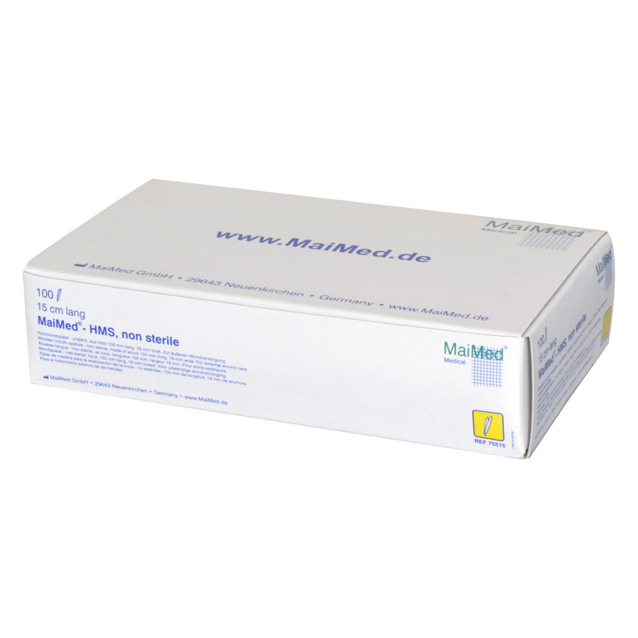 Espátula bucal de madera MaiMed- espátula bucal de madera lista para usar- no estéril- fabricada 100% en madera de abedul- calidad sin astillas- bordes redondeados- 15 cm de largo y 1,8 cm de ancho- esterilizable a A 121°C o EO