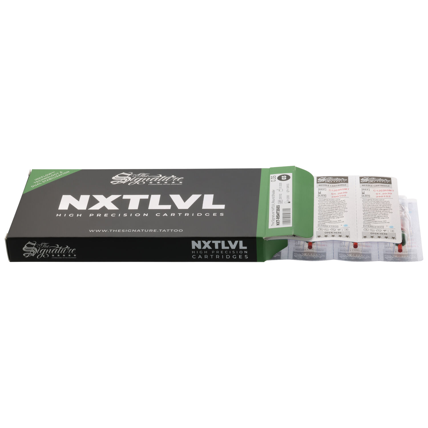 Los cartuchos The Signature® NXTLVL son aptos para todos los estilos y artistas: líneas finas o gruesas, sombreados suaves, rellenos suaves o intensos. Su forma ergonómica y los materiales seleccionados ofrecen máxima comodidad incluso en sesiones prolongadas.