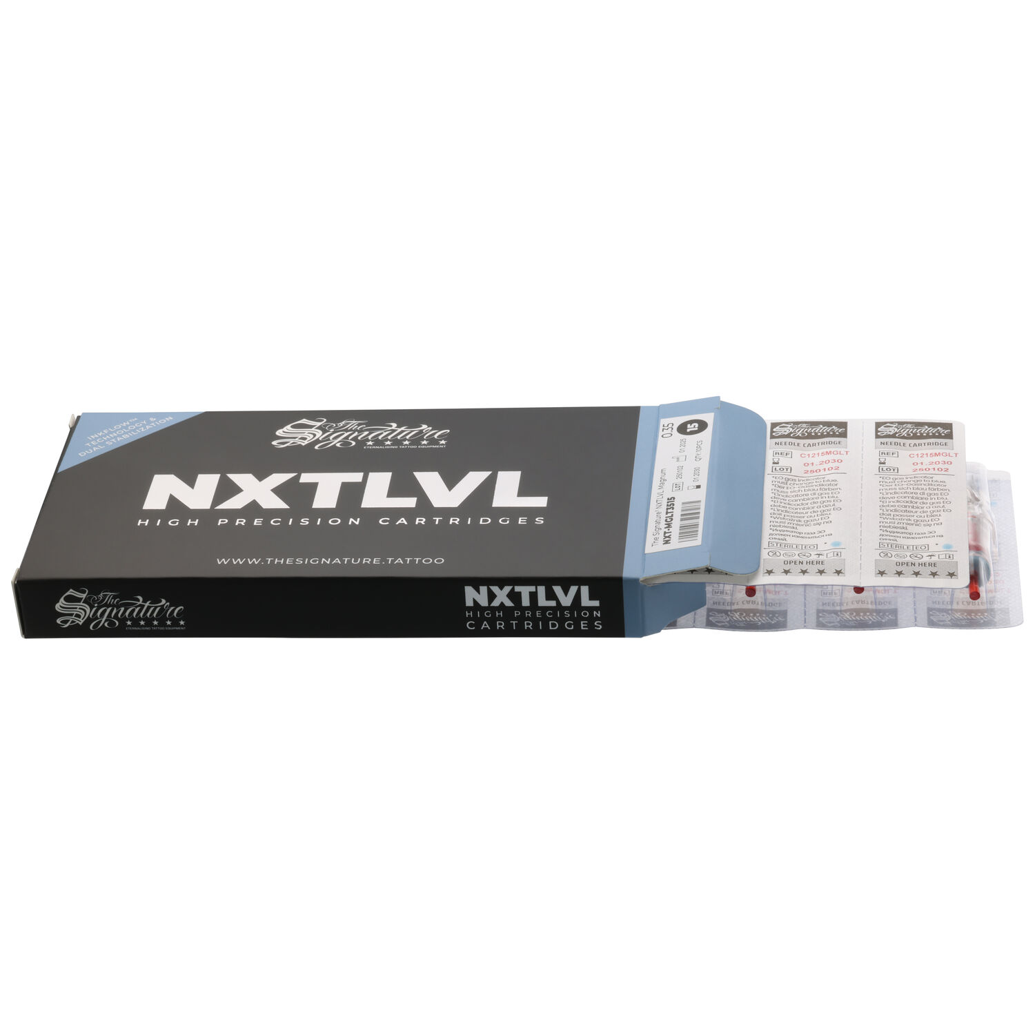 Los cartuchos The Signature® NXTLVL son adecuados para todos los estilos de tatuaje y tatuadores, ya sea líneas finas o gruesas, sombreados suaves, rellenos suaves o intensos. Su forma ergonómica y la elección cuidadosa de materiales aseguran máximo confort, incluso en sesiones largas.